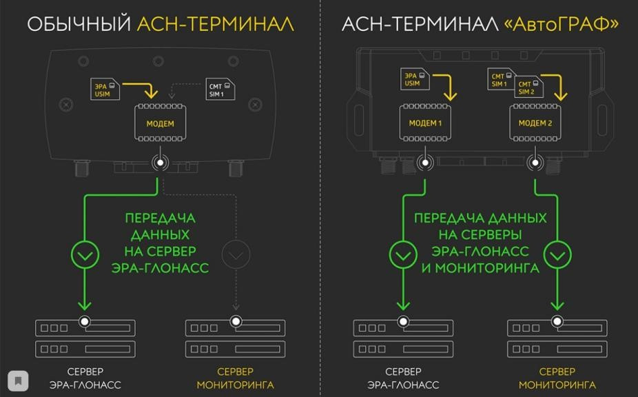 АСН «АвтоГРАФ» имеет главное преимущество над другими производителями АСН, наш прибор обеспечивает передачу мониторинговой информации с интервалом передачи не более 30 секунд через Государственную Автоматизированную Информационную Систему «ЭРА-ГЛОНАСС» (ГАИС «ЭРА-ГЛОНАСС») в Федеральную службу по надзору в сфере транспорта, так и в инные информацмонные системы (например, в собственную систему транспорта Клиента)